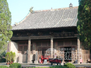 双林寺は、平南北124m、東西120m、寺の配置はほぼ左右対称になっています。北魏時代の創建ですが、ほとんどが明代に再建され、古くは中都寺と呼ばれていました。見どころは、各殿内に安置されている彩色塑像で、その数は2056体、そのうち1566体が完全な形で保存されています。左の伽藍配置図に記されている像、すべてが見どころですが、特に羅漢殿の十八羅漢の細かな描写、千仏殿の韋駄天の精巧さは、必見です。韋駄天(天神像ともいう)の躍動感は、西洋の彫刻の名作にも劣らないと評価され、中国の多くの美術学生が模写に訪れています。双林寺は別名「東の彩色塑像彫刻芸術の博物館」とも形容されます。