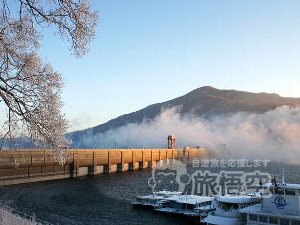 松花湖にある五虎島はダムから17kmの所にある島で、ダム湖ができるまでは五虎島といわれていました。現在では、避暑地として有名です。