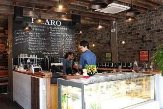 番禺路×虹橋路にオープンした日本人オーナーのカフェ「FIGARO」。番禺路のKFC隣の細い道に、隠れ家的カフェ。店内は木のテーブル&チェア。ブリックの壁。手書きの黒板メニューと、落ち着く空間です。